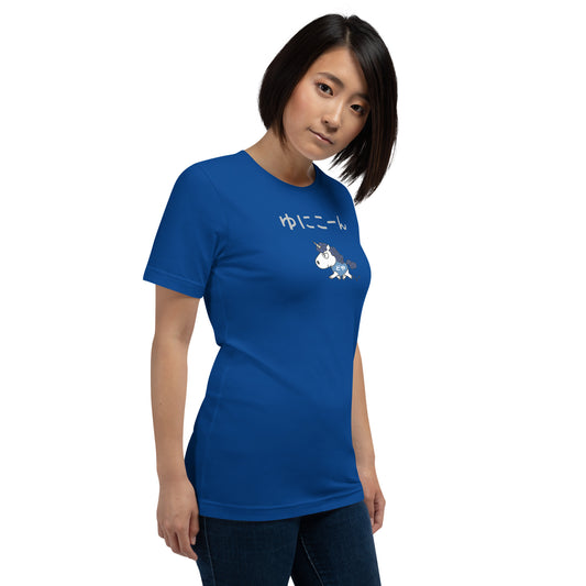 Unisex t-shirt unicorn front center【Doya】【Japanese-Hiragana】